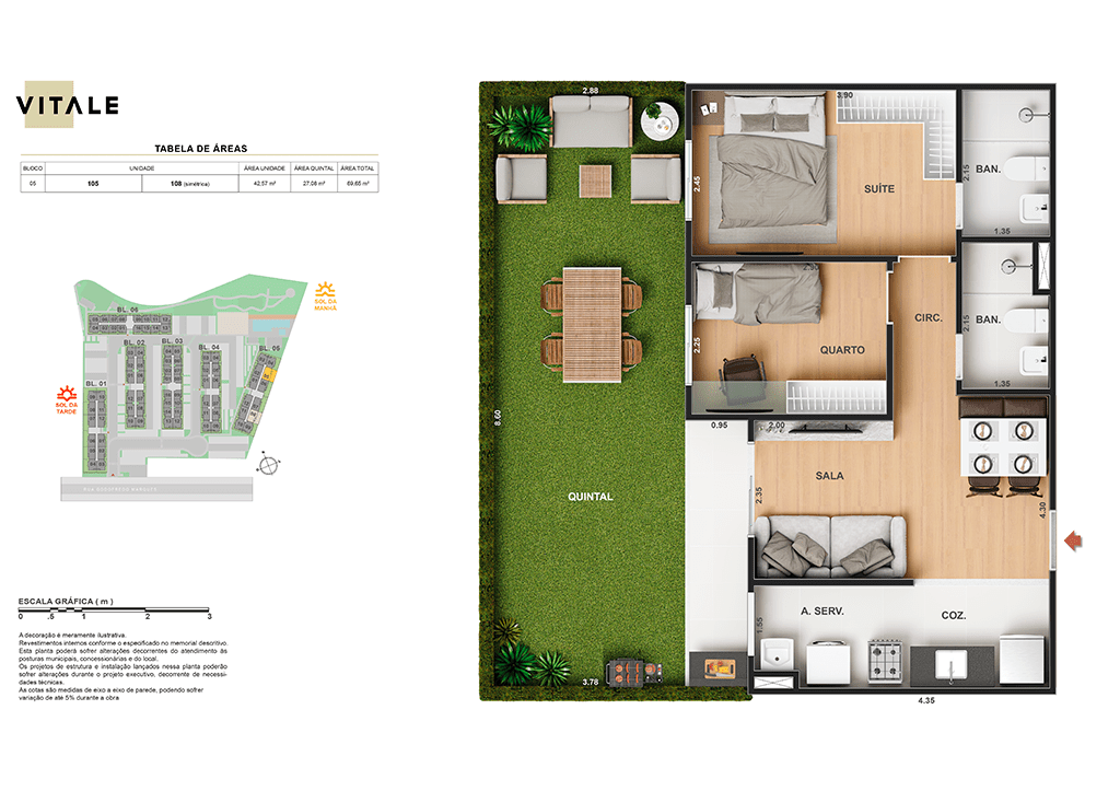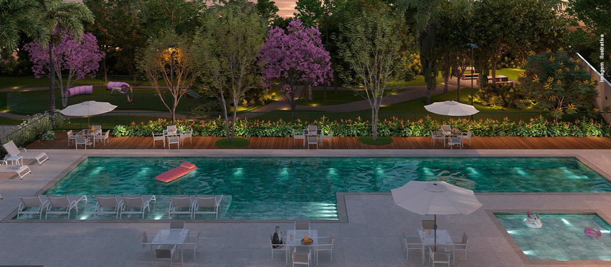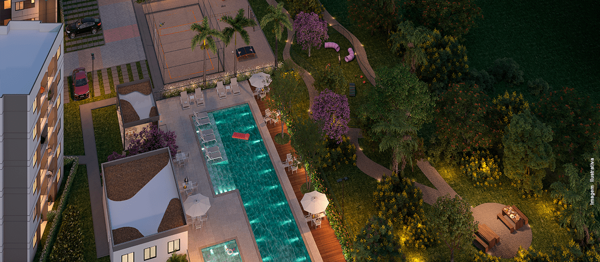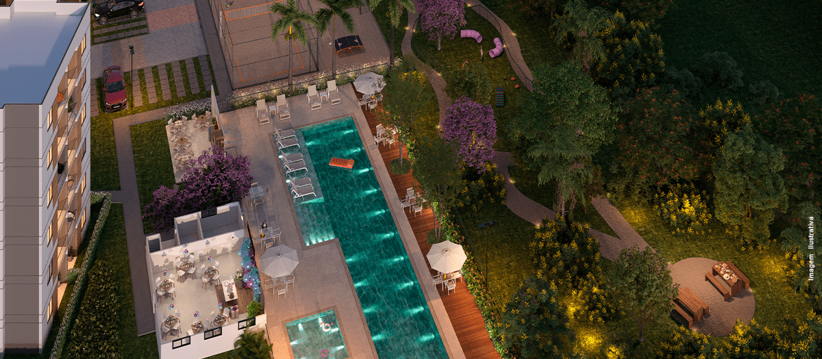 Apartamentos e Gardens de 1 e 2 quartos Opções com e sem suíte Todas as unidades com varanda Lazer completo para todas as idades Segurança e conforto para a sua família