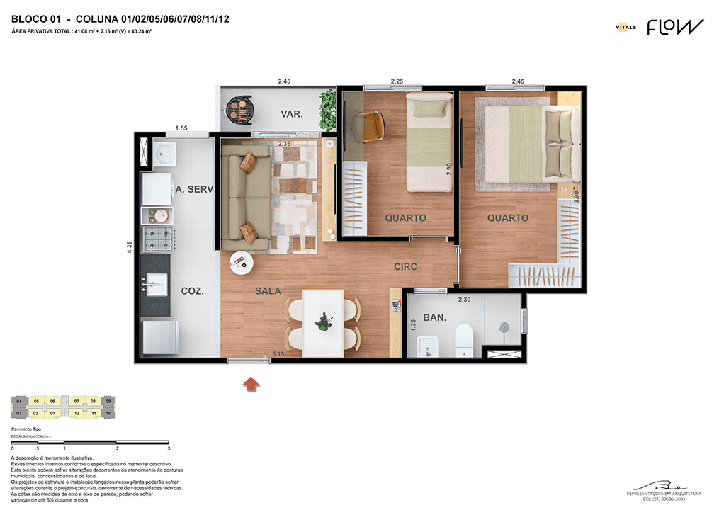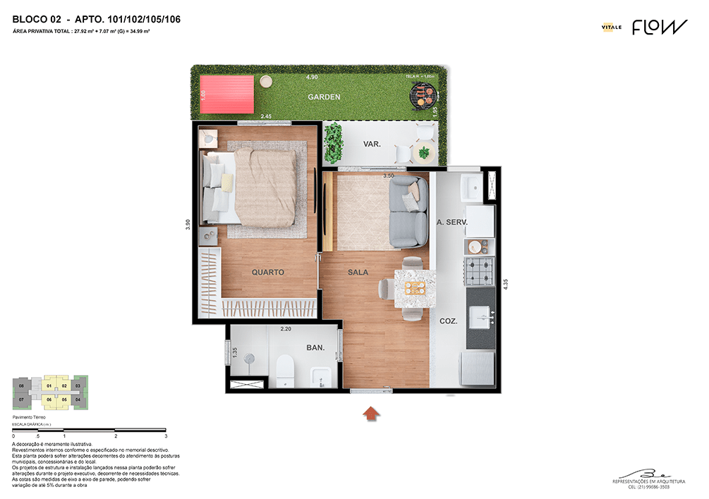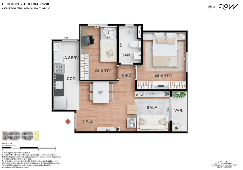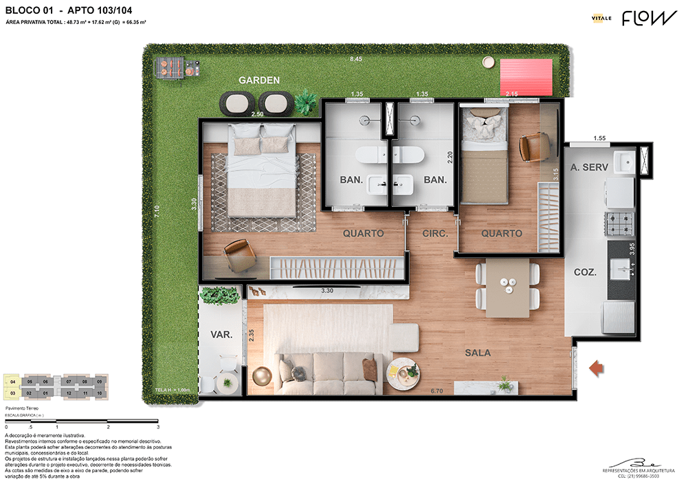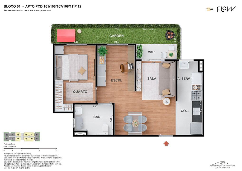 Todas as perspectivas, ilustrações e plantas contidas neste material foram concebidas como uma idealização artística de seus executores, de forma que ilustrem como pretendem que venha a ser o empreendimento em seu todo. O imóvel será construído com fiel observância das plantas aprovadas, das especificações e do memorial descritivo que integram o memorial de incorporação, podendo a PROMITENTE VENDEDORA, no entanto, por conveniência técnica, determinação do Poder Público ou exigência das empresas concessionárias de serviços públicos e Caixa Econômica Federal, promover modificações no projeto aprovado, sem que assista a qualquer das partes direito à indenização ou compensação. O paisagismo especificado nas ilustrações artísticas dos materiais publicitários é meramente enunciativo, de modo que o mesmo será executado com “mudas”, cabendo ao condomínio a responsabilidade de manter e zelar para que o referido paisagismo atinja ou se aproxime do nível sugerido no material exibido. O benefício do Programa Minha Casa, Minha Vida está de acordo com a Medida Provisória nº 1.162/2023. O financiamento no banco será concedido mediante análise prévia, pelo agente financiador, da documentação do comprador. É de responsabilidade exclusiva do comprador preencher as condições exigidas pelo agente financiador para concessão de empréstimo imobiliário. Arquiteta responsável pelo projeto: Virgínia Lannes Emanuel – CAU A4301-0. Engenheiro responsável pela obra: Carlos Eduardo Felix Paiva – CREA/RJ: 2003103537. Propriedade de V9 EMPREENDIMENTOS IMOBILIÁRIOS LTDA.
