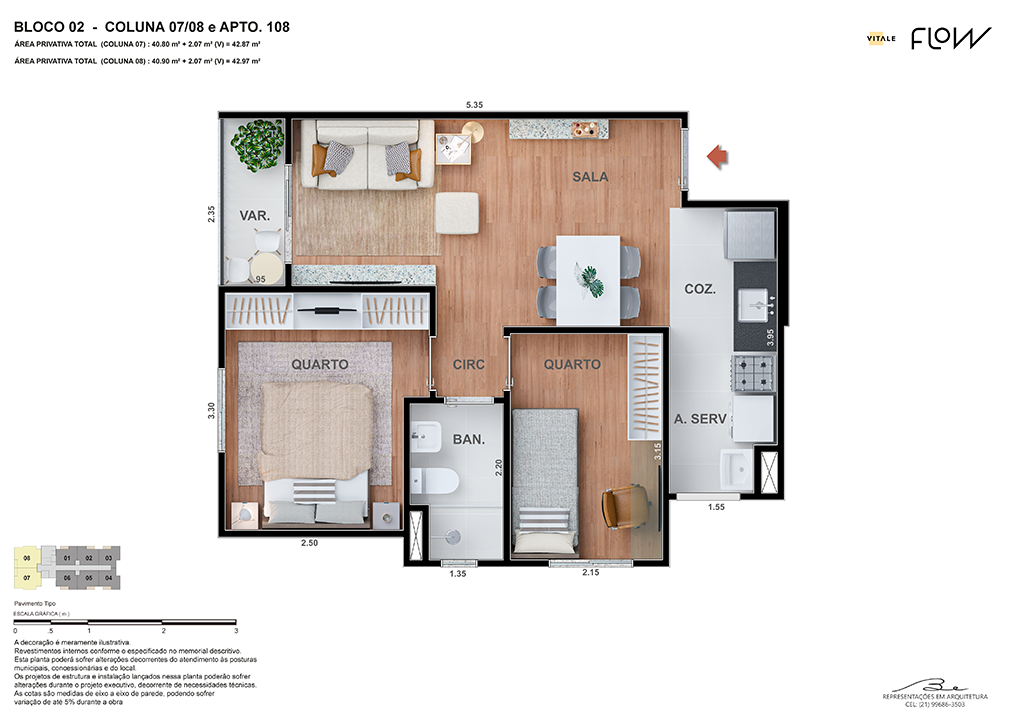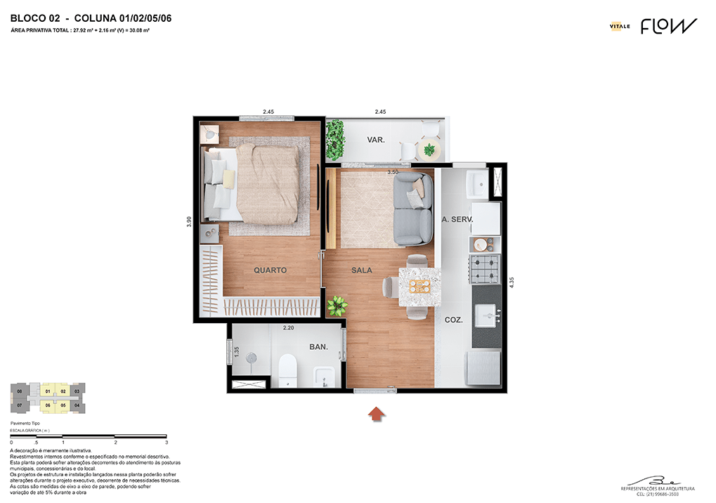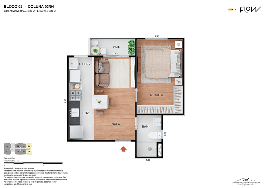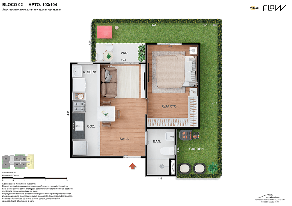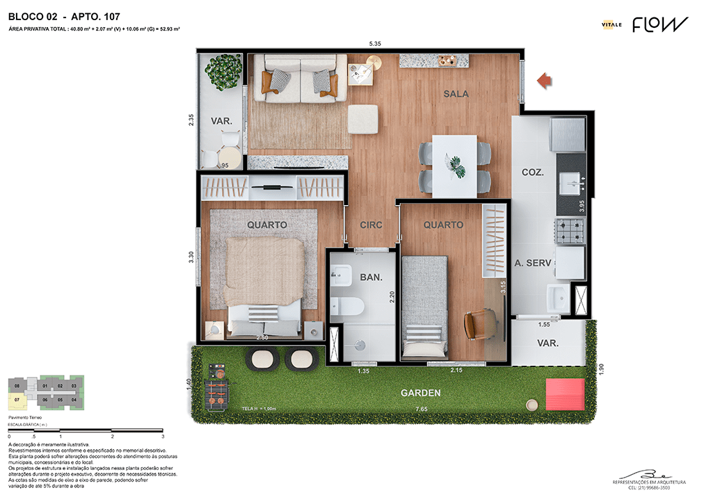 Todas as perspectivas, ilustrações e plantas contidas neste material foram concebidas como uma idealização artística de seus executores, de forma que ilustrem como pretendem que venha a ser o empreendimento em seu todo. O imóvel será construído com fiel observância das plantas aprovadas, das especificações e do memorial descritivo que integram o memorial de incorporação, podendo a PROMITENTE VENDEDORA, no entanto, por conveniência técnica, determinação do Poder Público ou exigência das empresas concessionárias de serviços públicos e Caixa Econômica Federal, promover modificações no projeto aprovado, sem que assista a qualquer das partes direito à indenização ou compensação. O paisagismo especificado nas ilustrações artísticas dos materiais publicitários é meramente enunciativo, de modo que o mesmo será executado com “mudas”, cabendo ao condomínio a responsabilidade de manter e zelar para que o referido paisagismo atinja ou se aproxime do nível sugerido no material exibido. O benefício do Programa Minha Casa, Minha Vida está de acordo com a Medida Provisória nº 1.162/2023. O financiamento no banco será concedido mediante análise prévia, pelo agente financiador, da documentação do comprador. É de responsabilidade exclusiva do comprador preencher as condições exigidas pelo agente financiador para concessão de empréstimo imobiliário. Arquiteta responsável pelo projeto: Virgínia Lannes Emanuel – CAU A4301-0. Engenheiro responsável pela obra: Carlos Eduardo Felix Paiva – CREA/RJ: 2003103537. Propriedade de V9 EMPREENDIMENTOS IMOBILIÁRIOS LTDA.