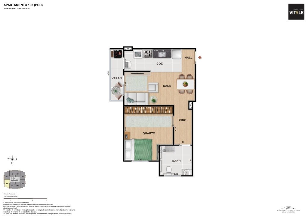 Todas as perspectivas, ilustrações e plantas contidas neste material foram concebidas como uma idealização artística de seus executores, de forma que ilustrem como pretendem que venha a ser o empreendimento em seu todo. O imóvel será construído com fiel observância das plantas aprovadas, das especificações e do memorial descritivo que integram o memorial de incorporação, podendo a PROMITENTE VENDEDORA, no entanto, por conveniência técnica, determinação do Poder Público ou exigência das empresas concessionárias de serviços públicos e Caixa Econômica Federal, promover modificações no projeto aprovado, sem que assista a qualquer das partes direito à indenização ou compensação. O paisagismo especificado nas ilustrações artísticas dos materiais publicitários é meramente enunciativo, de modo que o mesmo será executado com “mudas”, cabendo ao condomínio a responsabilidade de manter e zelar para que o referido paisagismo atinja ou se aproxime do nível sugerido no material exibido. O benefício do Programa Minha Casa, Minha Vida está de acordo com a Medida Provisória nº 1.162/2023. O financiamento no banco será concedido mediante análise prévia, pelo agente financiador, da documentação do comprador. É de responsabilidade exclusiva do comprador preencher as condições exigidas pelo agente financiador para concessão de empréstimo imobiliário. Arquiteta responsável pelo projeto: Virgínia Lannes Emanuel – CAU A4301-0. Engenheiro responsável pela obra: Carlos Eduardo Felix Paiva – CREA/RJ: 2003103537. Propriedade de V7 EMPREENDIMENTOS IMOBILIÁRIOS LTDA.